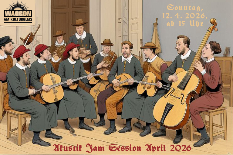 Seit September 2025 gab es keine Jam Session im Waggon mehr, deswegen haben alle, die Lust auf gemeinsames Musikmachen haben, noch dreimal (April/Mai/Juni) Gelegenheit, dies bei uns zu tun.Wie immer gilt: Ein eigenes akustisches Lieblings-Instrument einpacken, vorbeikommen – und mitmachen! JEdes Instrument ist willkommen! Batteriebetriebene elektronische Instrumente und Verstärker sind auch gestattet, solange sie sich an die Lautstärke rein akustischen Instrumente anpassen können!
