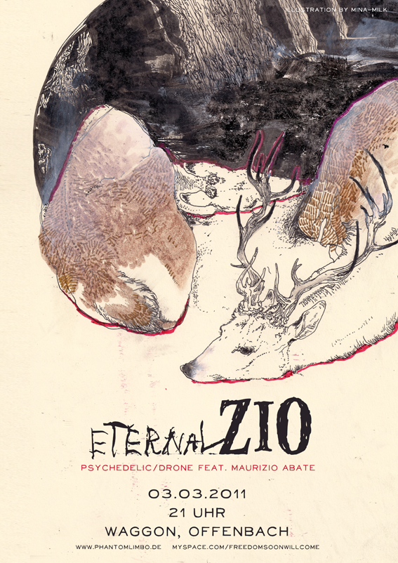 ETERNAL ZIO sind 3-5 Musiker (genaue Anzahl weiss man noch nicht!) aus Italien, die mit Hilfe von Instrumenten wie Geige, Orgel, Gitarre und einer Drehleier ein köstliches semi-akustisches Psychedelic-Drone-Gebräu für den musikalischen Feinschmecker anrichten werden. Slow movements, dream experience!