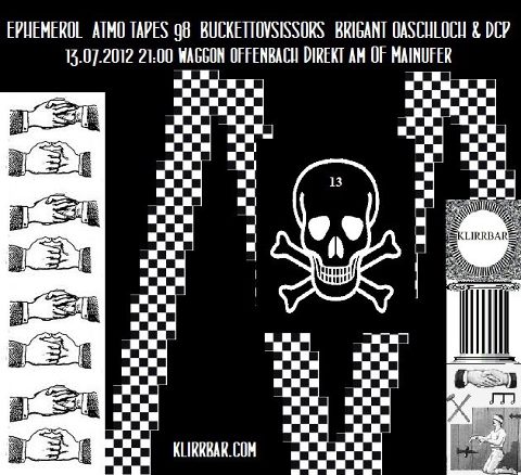 Fr.13.7.2012 – Klirrbar! Mit ephemeroL (Ffm), ATMO TAPES 98 (OF) & BUCKETTOVSCISSORS (Ffm)