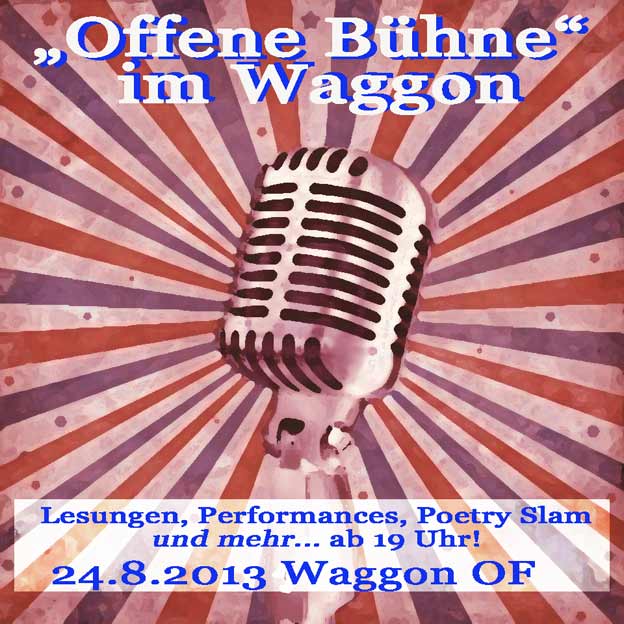 Vorleser, Performer, Poetry-Slammer und Literaten sind eingeladen, ihr Können im Waggon zu präsentieren. Achtung: Beginn bereits ab 19 Uhr!!!