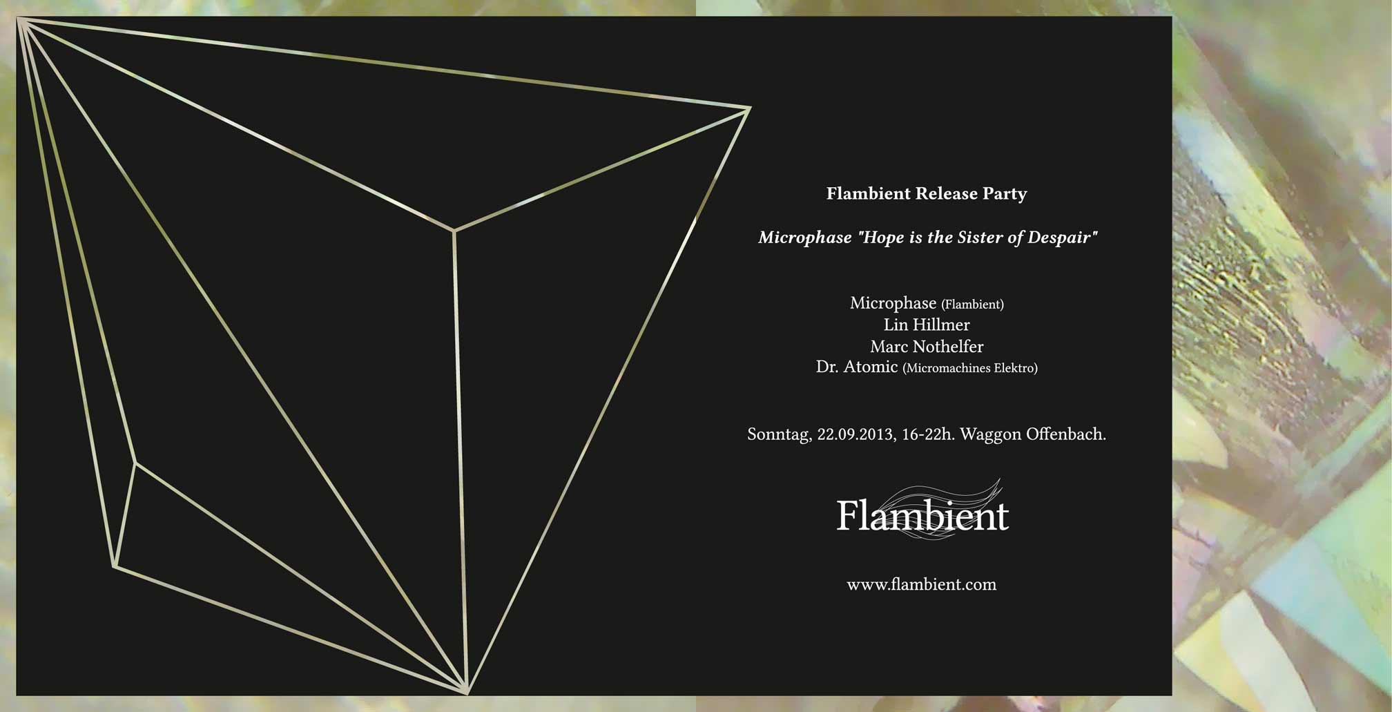 Unter dem Namen Microphase hat Niko Tzoukmanis seine erste Solo-CD „Hope is the Sister of Despair“ auf dem eigenen neuen Label Flambient veröffentlicht, auf welchem den Einflüssen von UK Electronica und Detroit Techno gehuldigt wird. Auf der Release-Party wird er von Lin Hillmer an den Decks sowie live von Marc Nothelfer und Dr. Atomic unterstützt. Ebenso wird er seine eigenen Tracks live performen.