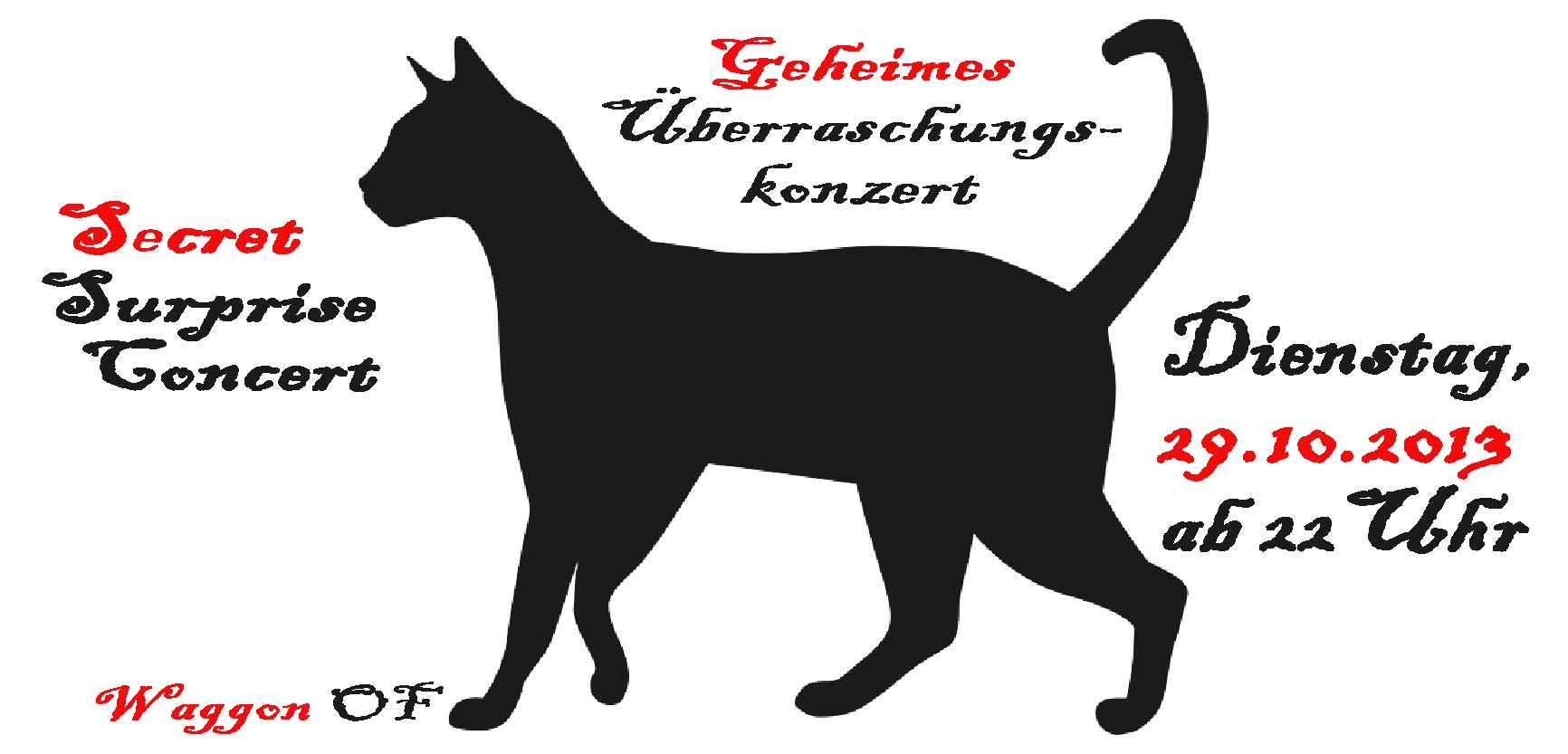 Heute Nacht begrüßen wir im Waggon eine international bekannte Rock- und Popband (die in der Vergangenheit bereits mehrmals bei uns gespielt hat) zu einem supergeheimen Überraschungskonzert! Wer es ist, wird nicht verraten… – daß sich ein Waggonbesuch für dieses Konzert mehr als lohnt, wird hingegen versichert. Genug gesagt, wer’s wissen will, muß kommen!