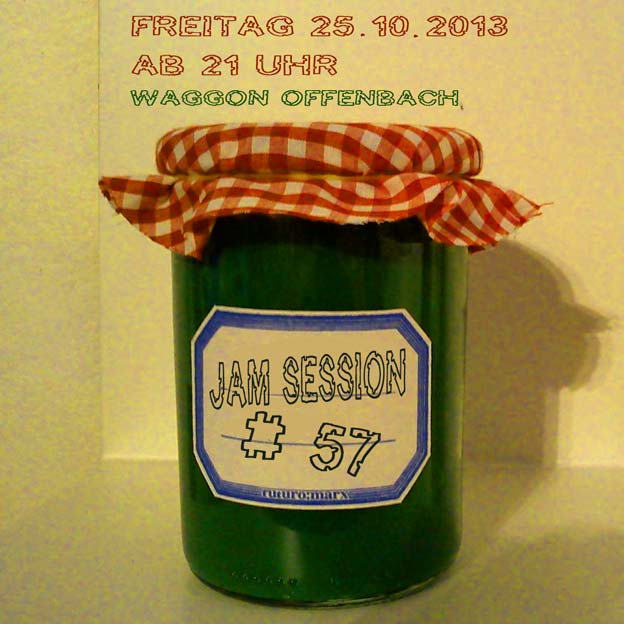 Beitrags-Kategorie:ProgrammFreitag, 25.Oktober 2013 – Die 57. Jam SessionHere we go again: letzter Freitag im Monat = Jam Session im Waggon. Kommt, spielt, lauscht und trinkt! Alle! Beginn ab 21 Uhr!Weitere Artikel ansehen Vorheriger BeitragDonnerstag, 24.10.2013 – SUPERSTOLK (OF) & DIE BROTLOSE BROTDOSE (FFM) Nächster BeitragSamstag, 26.10.2013 – Steffen Willems‘ Clubwagen #3Schreibe einen Kommentar Antworten abbrechenKommentierenGib deinen Namen oder Benutzernamen zum Kommentieren einGib deine E-Mail-Adresse zum Kommentieren einGib deine Website-URL ein (optional) Meinen Namen, meine E-Mail-Adresse und meine Website in diesem Browser für die nächste Kommentierung speichern. ΔDiese Website verwendet Akismet, um Spam zu reduzieren. Erfahre, wie deine Kommentardaten verarbeitet werden.
