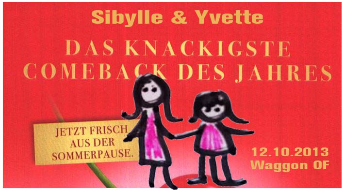 Beitrags-Kategorie:Programm / Sibylle und YvetteSamstag, 12. Oktober 2013 (ab 21 Uhr) – Sibylle & Yvette DJ SetJetzt frisch zurück aus der Sommerpause: Unsere Mon Chericherie Ladys sind wieder da. Tanzen, trinken, träumen: Wer kann dazu schon Nein sagen?Weitere Artikel ansehen Vorheriger BeitragFreitag, 11.10.2013 – Klirrbar! Nächster BeitragSonntag, 13.10.2013 – Lena Sperlin & Horst SenegalSchreibe einen Kommentar Antworten abbrechenKommentierenGib deinen Namen oder Benutzernamen zum Kommentieren einGib deine E-Mail-Adresse zum Kommentieren einGib deine Website-URL ein (optional) Meinen Namen, meine E-Mail-Adresse und meine Website in diesem Browser für die nächste Kommentierung speichern. ΔDiese Website verwendet Akismet, um Spam zu reduzieren. Erfahre, wie deine Kommentardaten verarbeitet werden.