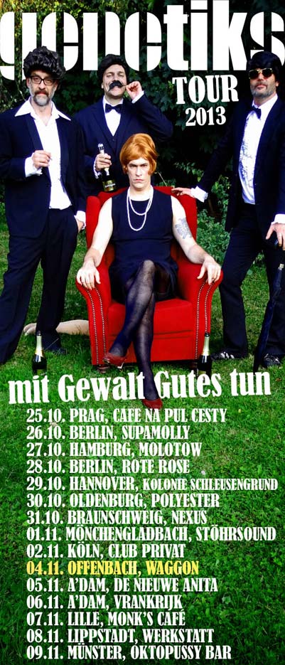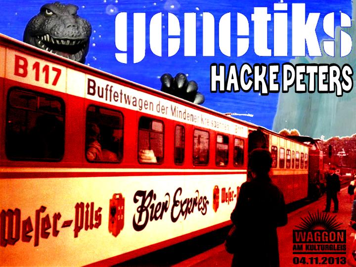 MONTAGS-PUNK-KONZERT im WAGGON! Die Genetiks schauen auch auf ihrer aktuellen Europa-Tour wieder im Waggon vorbei und liefern wieder ihren geilen Wave/Punk-Sound mit den klugen Texten‚ den wir so lieben…Das Vorprogramm bestreitet die HACKE PETERS – eine Frankfurter Punk Legende, die bereits 1987 gegründet wurde – mit gediegenem 80er/Deutsch/Fun/Hardcore PunkRock!