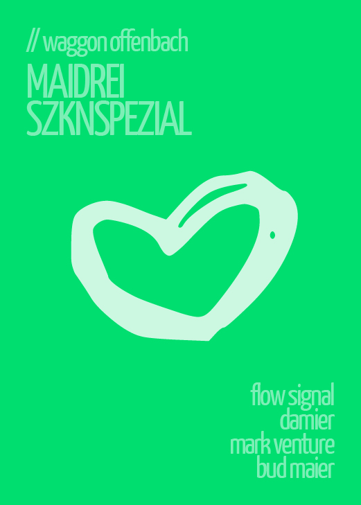 MaiDrei – dahinter verbirgt sich nichts geringeres als der 3. Mai 2014 mit einer außergewöhnlich bemerkenswerten musikalischen Zusammenstellung der SZKN Posse. Den ungewöhnlich weiten Weg aus Vibes-City in der Nähe von Kingston nimmt Flow Signal von Armagiddeon Sound auf sich, um mit einem seiner bezaubernd sonnendurchfluteten Darbietungen den jungen Abend einzuläuten. Dub, Down & Dirty – die Sonne leuchtet überall. Bevor der unfassbare Mark Venture das Steuerrad in der Lokomotive des Waggon übernimmt und da anknüpft wo der nächste weitermacht: Maschinen inspirieren manche zum arbeiten, andere zum tanzen. Bud Maier widmet sich einer seiner seltenen Livedarbietungen und übergibt an einen weiterer Gast, den wir sehr herzlich aus Wiesbaden von der Mahagoni. Edelholz. Eventreihe. begrüßen: Damier (aka Damier PN). Damier hat einen unüberschaubaren Fundus an Musik im Repertoire, dieser lässt Raum für Fantasien. Im Waggon eures Vertrauens.