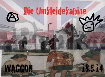 Zwischen Daniel Zeros DJ Sets gibt die Offenbacher Punkband DIE UMKLEIDEKABINE – keine 4 Wochen nach der Bandgründung – ihr Debütkonzert (um ca. 19:30 Uhr) – „Punk wie Punk sein muß. Punk heißt auch mal Pause.“