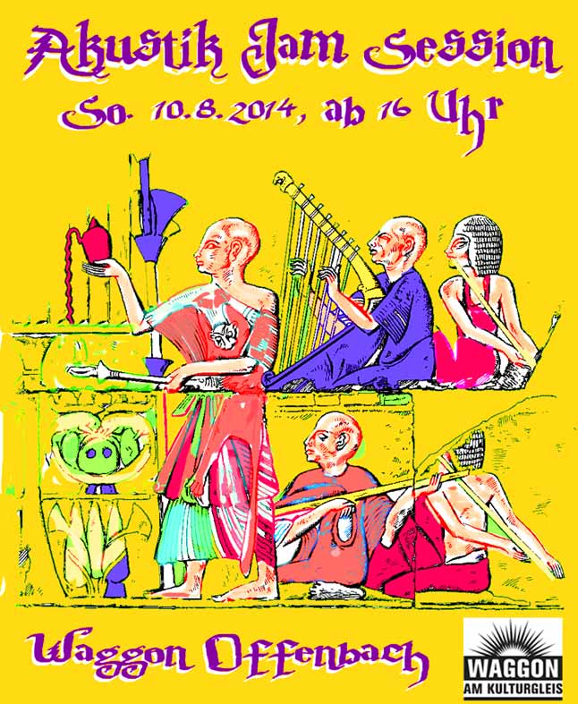 Neue Waggonausstellung, diesmal mit Arbeiten (Zeichnungen) der Offenbacher Künstlerin ̶̶ Jana Junghanns. Und statt Feier gibt‘s eine weitere Ausgabe der Akustik Jam Session, bei der‘s wieder heißt: „Verstärker und Elektronik verboten, aber jedes denkbare akustische Instrument erwünscht!“