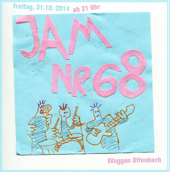 Beitrags-Kategorie:ProgrammFreitag, 31. Oktober 2014 (ab 21 Uhr): Jam Session # 68Die Oktober Jam Session wartet auch auf Dich! Lieblingsinstrument mitnehmen und ab geht‘s! Ab 9!Weitere Artikel ansehen Vorheriger BeitragDonnerstag, 30.10.2014 – Filmabend Nächster BeitragSamstag, 1.11.2014 – GENETIKS (Nürnberg) & HACKEPETERS (Ffm)Schreibe einen Kommentar Antworten abbrechenKommentierenGib deinen Namen oder Benutzernamen zum Kommentieren einGib deine E-Mail-Adresse zum Kommentieren einGib deine Website-URL ein (optional) Meinen Namen, meine E-Mail-Adresse und meine Website in diesem Browser für die nächste Kommentierung speichern. ΔDiese Website verwendet Akismet, um Spam zu reduzieren. Erfahre, wie deine Kommentardaten verarbeitet werden.