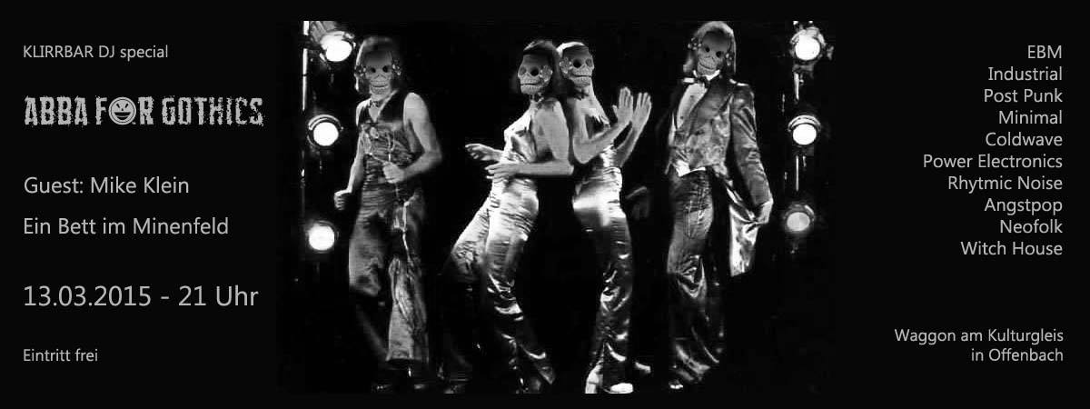 Das Ein Bett Im Minenfeld DJ-Team präsentiert: „ABBA für Gothics“. Als Gast-DJ heute dabei: Mike Klein!