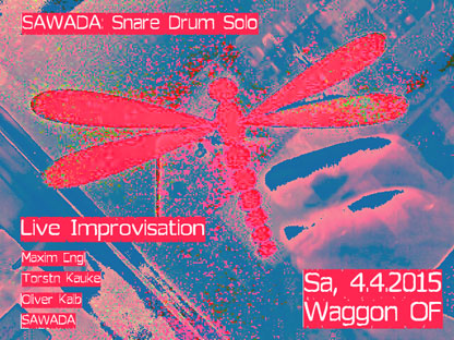 Der zweite Teil des Abends wird eine absolute Premiere für alle Beteiligten. Gemeinsam mit SAWADA am Waggon-Schlagzeug werden die Frankfurter/Offenbacher Musiker Maxim Engl, Torstn Kauke und Oliver Kaib (alle bekannt aus zahlreichen Jam Sessions im Waggon) mit Hilfe elektromagnetischer und elektronischer Klangerzeuger ein komplett improvisiertes Konzert spielen, das den musikalischen Kontrast zwischen gaaanz leise und seeehr laut ausloten soll – und wird. Eine Deutsch-Japanische Musikkollaboration, die es so noch nicht gab, ein bisher einmaliges Ereigniss in der Geschichte des Waggons!
