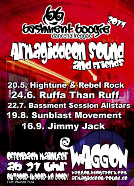Heute wieder parallel zum großen Mainuferfest in Offenbach. Armagiddeon Sound zusammen mit Ruffa Than Ruff aus Baden Baden (inzwischen Freiburg): Reggae, Dancehall & Bass-Music straight outta the Blackforrest ! Ab 21 Uhr!