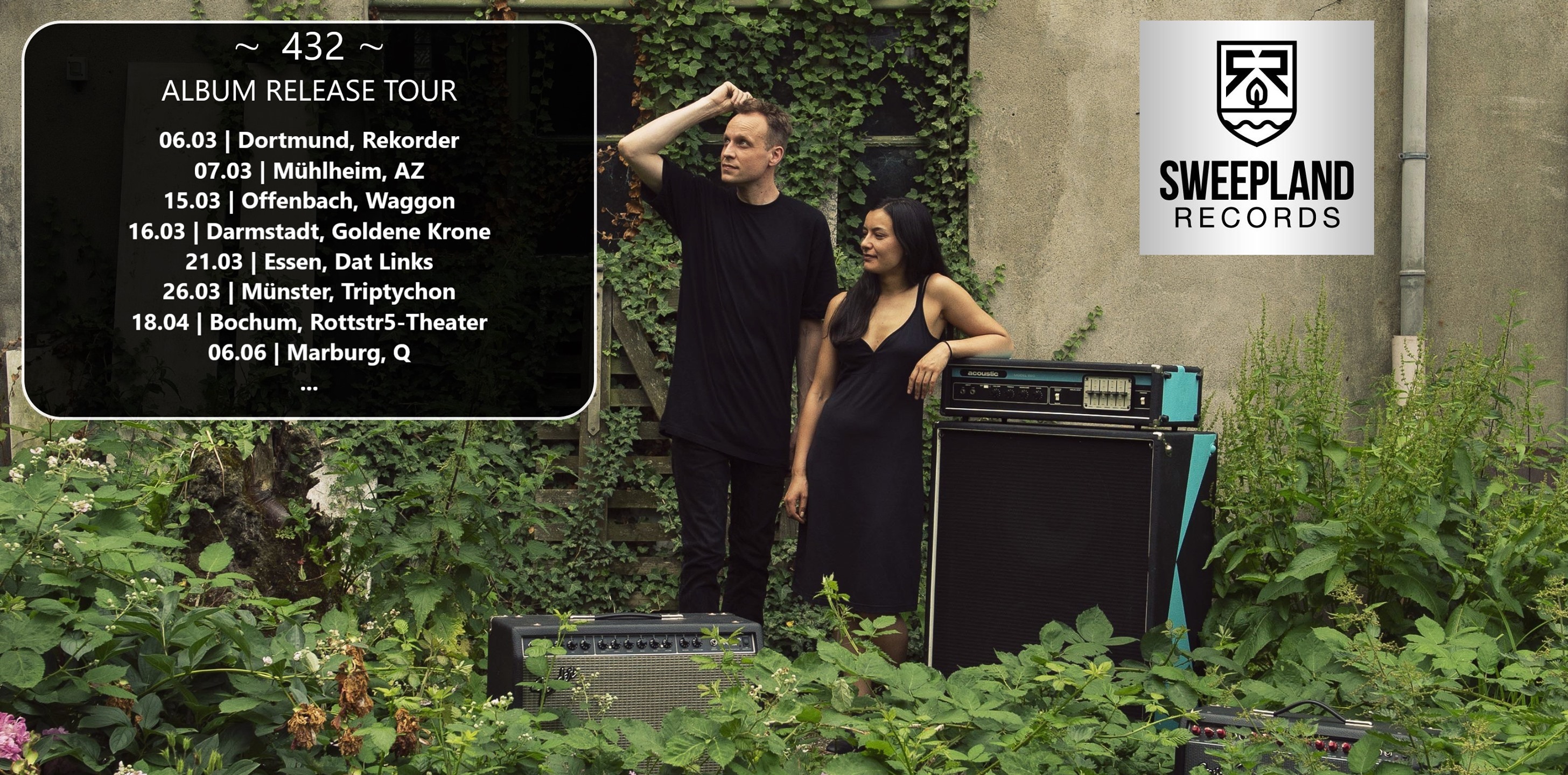 ANIYO KORE sounds like Portishead, Tom Waits, Björk and Sleep put in a blender. 100% original, no coversongs and beyond the standard song structures the duo (f/m) is on a quest for their most unique and vivid live performance. Deep & heavy grooves forged out of handmade drum and synthie-sounds roar from an MPC along his earthly bass and her full body guitar melodies. This is neo-psychedelic ! Together they sing songs inspired by bleak reality and the beautiful hope they find within.. Their new album „432“ is out on SWEEPLAND RECORDS in march 2020.