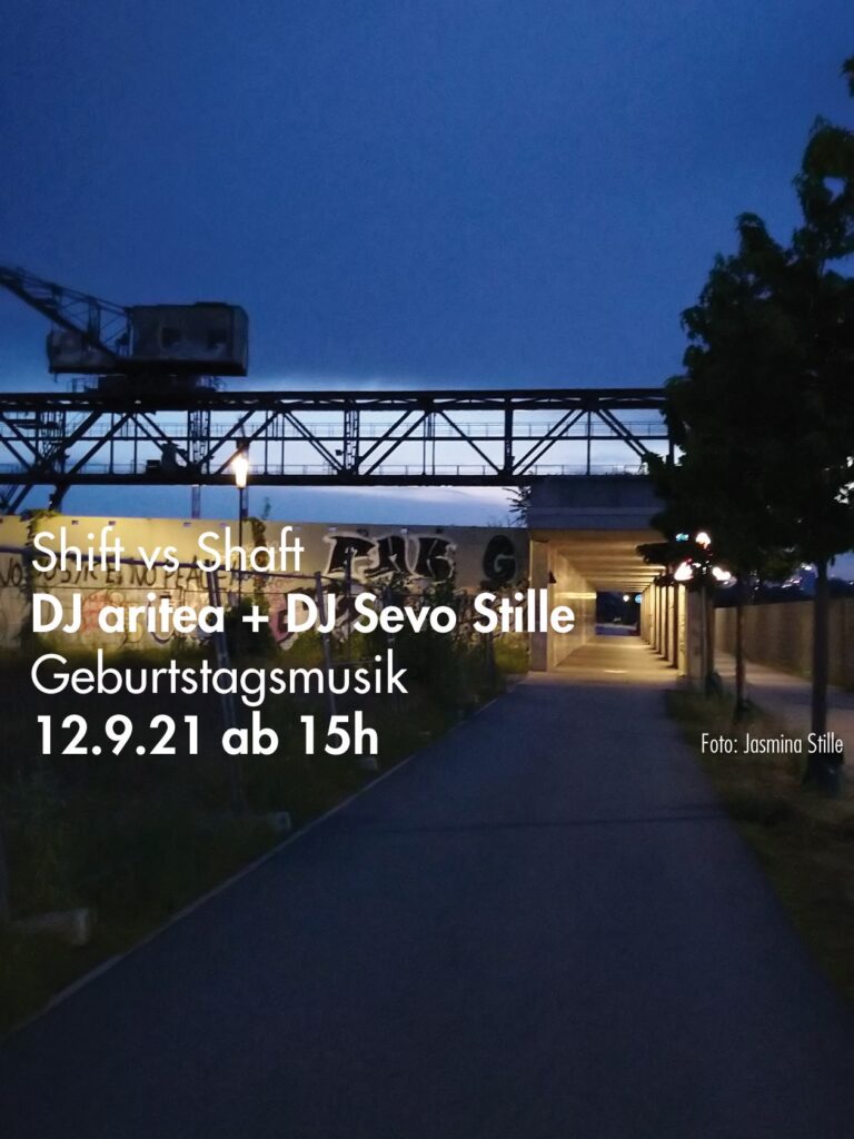 Beitrags-Kategorie:ProgrammSevo Stille vs. aritea – Elektronik, Dub, Breakbeat zum GeburtstagSo 12.9.2021 (ab 15 Uhr) – Shift vs. ShaftWeitere Artikel ansehen Vorheriger BeitragSamstag, 11.9.2021 – Discothèque Africaine Nächster BeitragDownload Akustik Sessions 2020 & 2021Schreibe einen Kommentar Antworten abbrechenKommentierenGib deinen Namen oder Benutzernamen zum Kommentieren einGib deine E-Mail-Adresse zum Kommentieren einGib deine Website-URL ein (optional) Meinen Namen, meine E-Mail-Adresse und meine Website in diesem Browser für die nächste Kommentierung speichern. ΔDiese Website verwendet Akismet, um Spam zu reduzieren. Erfahre, wie deine Kommentardaten verarbeitet werden.