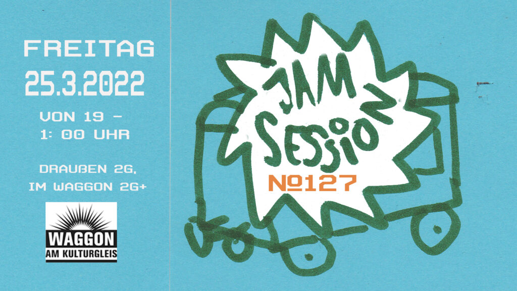 Bis max 1 Uhr! Offene Jam Session, wie jeden letzten Freitag des Monats im Waggon in der elektronisch verstärkten Version! Anlage und Schlagzeug stellen wir, Instrumente und Verstärker bitte selbst mitbringen!