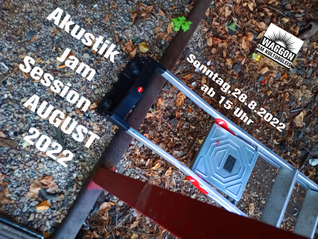 Beitrags-Kategorie:Akustik Jam Session / Programm / RegelmaessigAkustische Instrumente aller Art erwünscht und willkommen! Eine gute Gelegenheit, diese wieder mal raus zu holen und auf ihnen zu spielen! Gemeinsam heute Nachmittag am Waggon!Ab 15 Uhr.Weitere Artikel ansehen Vorheriger BeitragSamstag, 27.8.2022 – 80ties Retro-Future Dance P.2 Nächster BeitragIm Waggon durch den September…Schreibe einen Kommentar Antworten abbrechenKommentierenGib deinen Namen oder Benutzernamen zum Kommentieren einGib deine E-Mail-Adresse zum Kommentieren einGib deine Website-URL ein (optional) Meinen Namen, meine E-Mail-Adresse und meine Website in diesem Browser für die nächste Kommentierung speichern. ΔDiese Website verwendet Akismet, um Spam zu reduzieren. Erfahre, wie deine Kommentardaten verarbeitet werden.