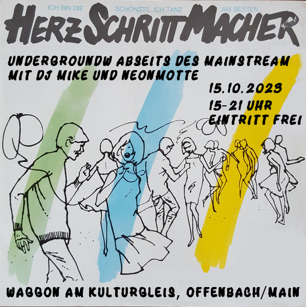 Beitrags-Kategorie:Programm / VeranstaltungAb 15 Uhr!Wochenausklang mit UndergrouNDW abseits der Charts von Kassettentätern bis bekannteren Bands, von minimal bis punkig,präsentiert von DJ Mike! Diesmal mit Gast-DJ NEONMOTTE!Ab 15 Uhr!Weitere Artikel ansehen Vorheriger BeitragSamstag, 14.10.2023 – Armagiddeon Sound meets Gaia Vibration Soundsystem Nächster BeitragFreitag, 19.10. – Samstag 21.10.2023: EXP EST – das Experimentalfest im WaggonSchreibe einen Kommentar Antworten abbrechenKommentierenGib deinen Namen oder Benutzernamen zum Kommentieren einGib deine E-Mail-Adresse zum Kommentieren einGib deine Website-URL ein (optional) Meinen Namen, meine E-Mail-Adresse und meine Website in diesem Browser für die nächste Kommentierung speichern. ΔDiese Website verwendet Akismet, um Spam zu reduzieren. Erfahre, wie deine Kommentardaten verarbeitet werden.