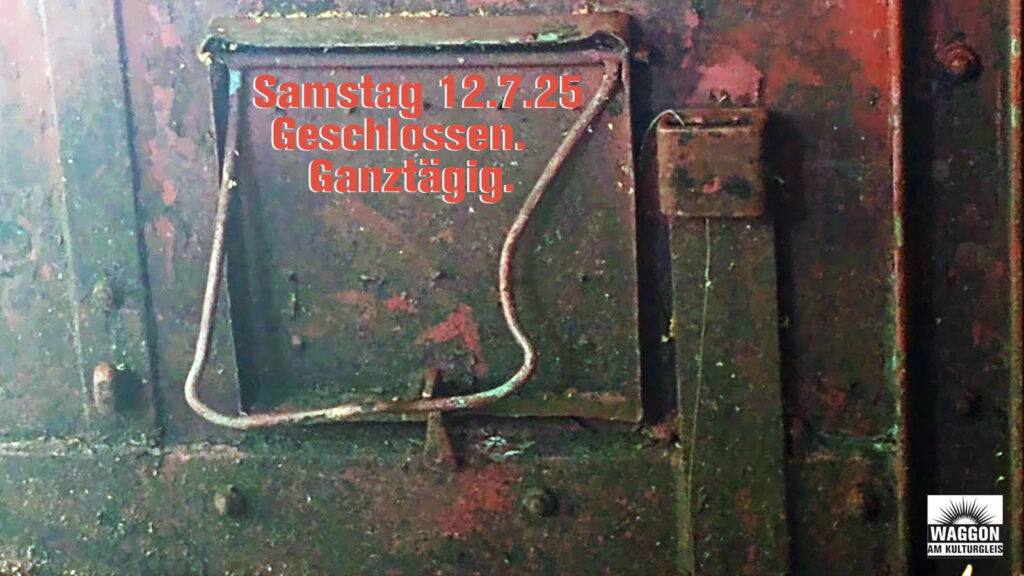 Beitrags-Kategorie:ProgrammGESCHLOSSEN (AUS GRÜNDEN)Hier ist er – der Tag, an dem ALLE Waggonbetreiber & -mitarbeiter keine Zeit haben! Denn manchmal sind private Familientermine einfach wichtiger! Gab’s noch nie, muß aber heute sein. Wir bitten um Verständnis!Weitere Artikel ansehen Vorheriger BeitragFreitag, 11.7.2025 – THE STOOGIES (D) Nächster BeitragSonntag, 13.7.2025 – „Im Jaguar nach Offenbach“ – Lesung & MusikSchreibe einen Kommentar Antworten abbrechenKommentierenGib deinen Namen oder Benutzernamen zum Kommentieren einGib deine E-Mail-Adresse zum Kommentieren einGib deine Website-URL ein (optional) Meinen Namen, meine E-Mail-Adresse und meine Website in diesem Browser für die nächste Kommentierung speichern. ΔDiese Website verwendet Akismet, um Spam zu reduzieren. Erfahre, wie deine Kommentardaten verarbeitet werden.