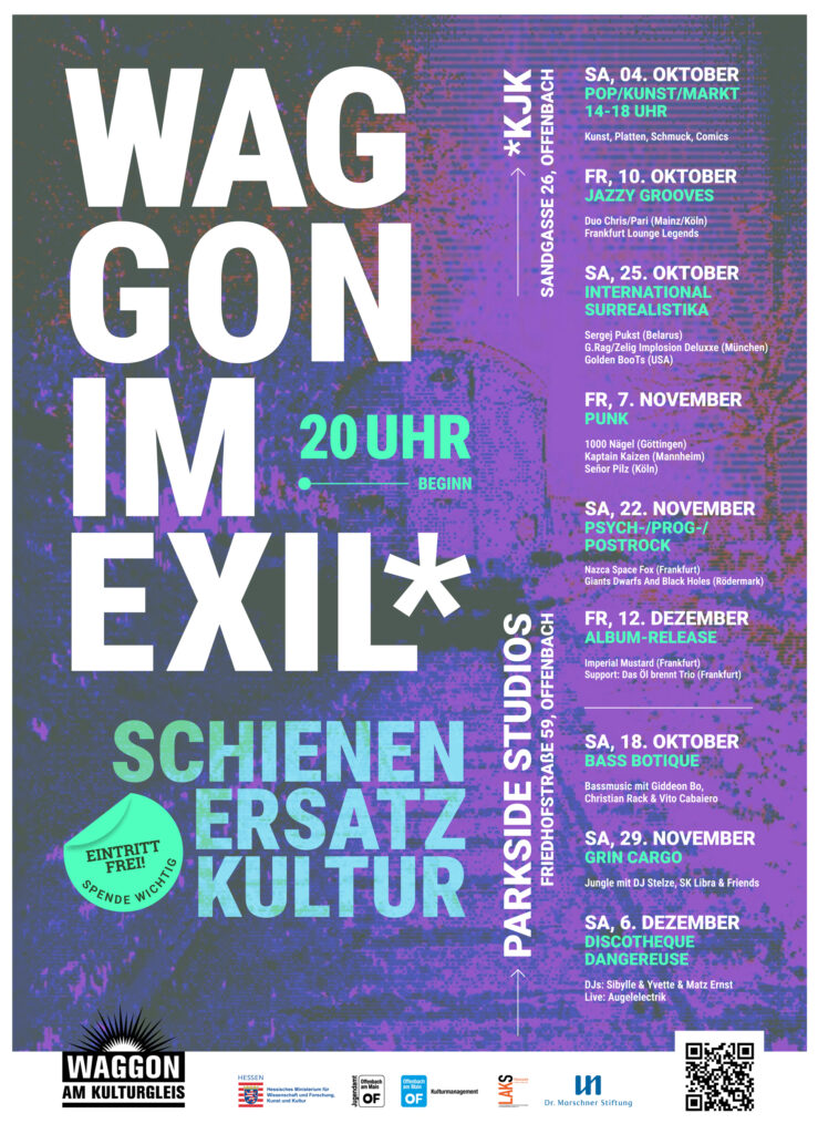 - Schienen Ersatz KulturSeptember 22, 2025- Ab Oktober wieder „Waggon-Im_Exil“-Veranstatungen im KJK Sandgasse und in den Parkside Studios in Offenbach am Main!