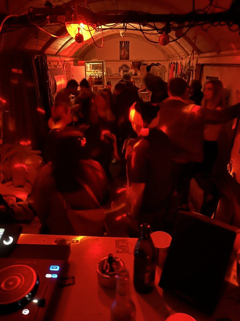 Wir legen hier seit vielen Jahren auf, quasi die Sibylle-und-Yvette-Homebase, denn dies ist der Ort, wo wir spielen, worauf WIR Lust haben und nicht, was der Gastgeber von uns verlangt. Von hier sind wir weg gebucht worden in Frankfurter Museen oder auf größere Veranstaltungen. Es gab legendäre Nächte dort: Von „wir sind friedlich – Was seid ihr?“-Rufen, komische Vollmond-Pheromonnächte, wo Paare auf unserer Tanzfläche sich gefunden haben, die eigentlich nicht zusammen gehören, bis hin zur Corona-Zeit, als wir alleine im Güterwaggon standen und ihr (mit Boxen ausgestattet) drum herum sitzen musstet und soweit weg von uns wart…Wenn ihr es bis hierhin gelesen habt: alle, die mit uns schon dort gefeiert haben, und alle, die noch nie bei uns waren: kommt vorbei und begießt mit uns einen womöglich letzten Abend in der Sibylle und Yvette Lieblingslocation. Unsere Musik mit dem fantastisch und einzigartigen Blick auf den Sonnenuntergang über den Main.